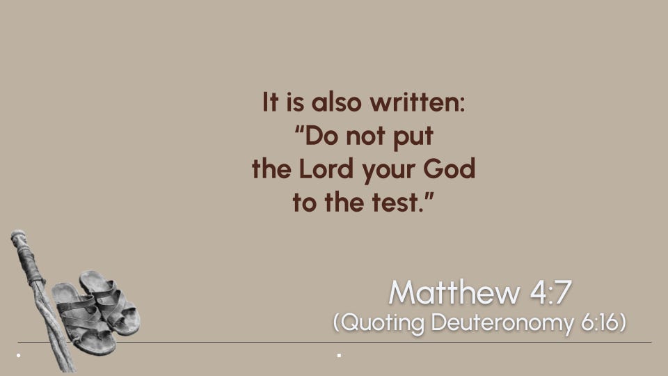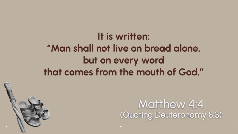 “Wow,” Matthew thinks to himself, “That reminds me of Jesus in the desert! The Israelites spent 40 years in the wilderness and barely learned a thing…. Jesus spent 40 days in the wilderness and never failed!