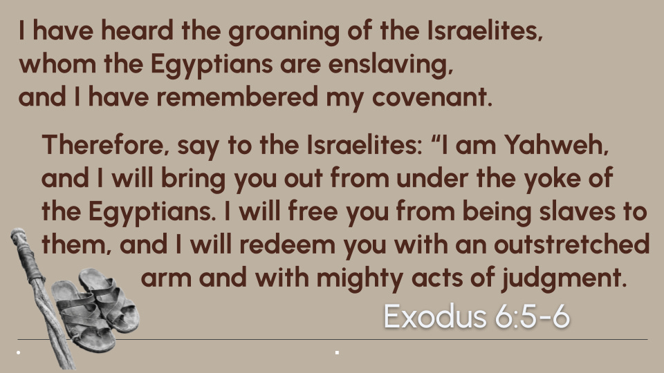 The core message of these three chapters in Exodus is that God hears the cries of His people, remembers His promises, and acts decisively to deliver us.