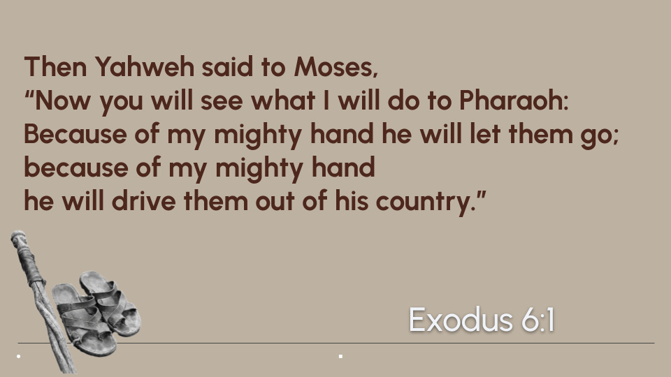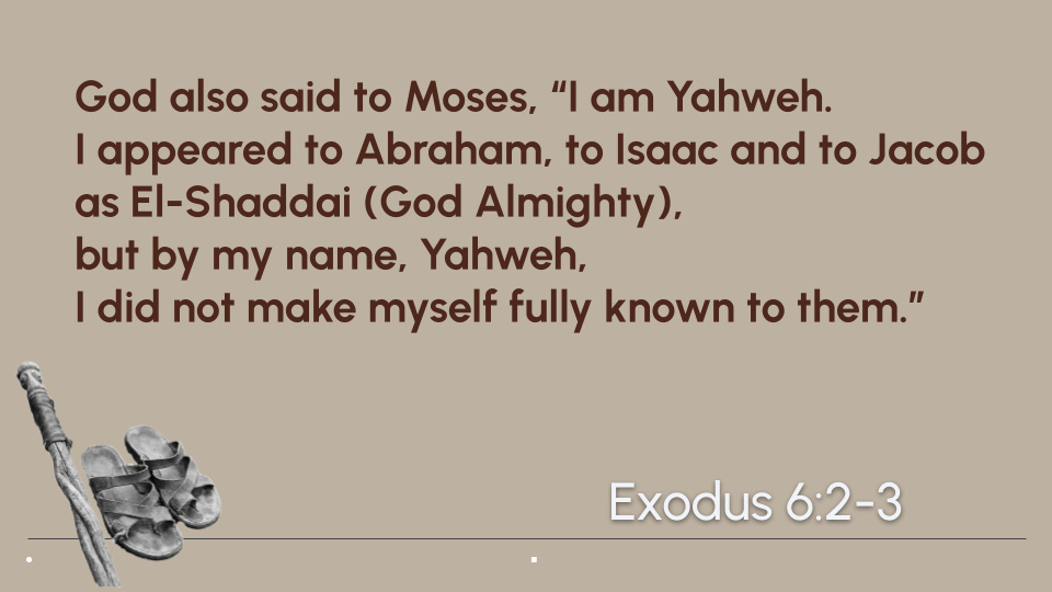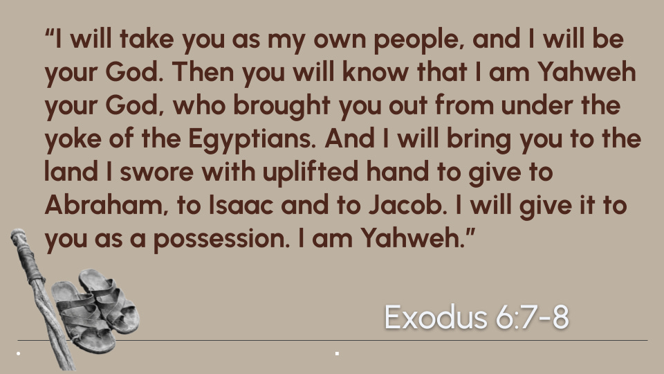 Then God goes into a beautiful riff. Using His name for the first time, Yahweh reveals His true identity and declares all that He will do for His people.