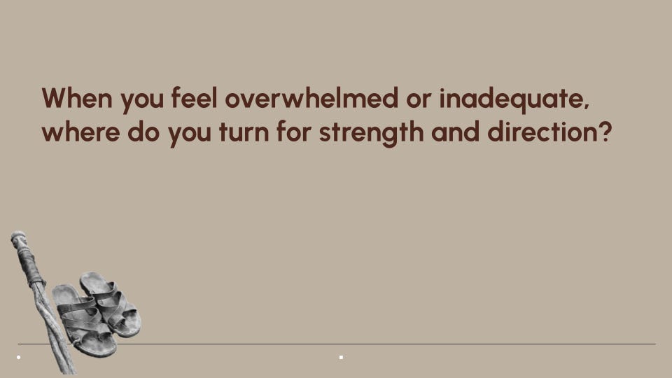 “When you feel overwhelmed or inadequate, where do you turn for strength and direction?”