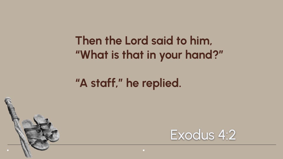The staff of God! What a great name for a walking stick! The stick is old, but the name is new. Look back at verse 2.